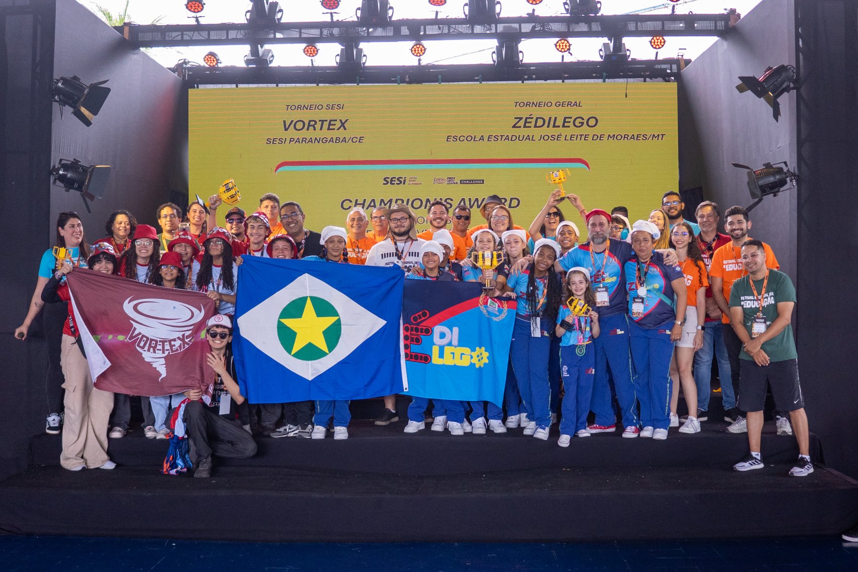 A manhã do último dia trouxe as semifinais e finais da categoria FLLC (FIRST LEGO League Challenge), que fecharam o torneio com a energia típica de quem sabe que cada segundo pode mudar o destino do robô. A disputa final reuniu Vortex e Zédilego em uma batalha de estratégia milimétrica. No fim, a equipe Vortex conquistou o título do Torneio SESI, enquanto a Zédilego levou o troféu de campeã do Torneio Geral.