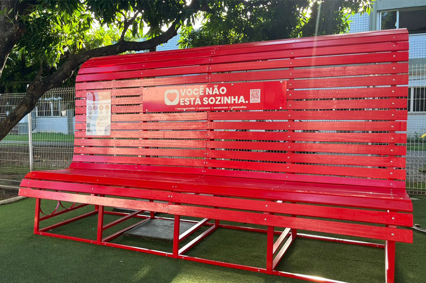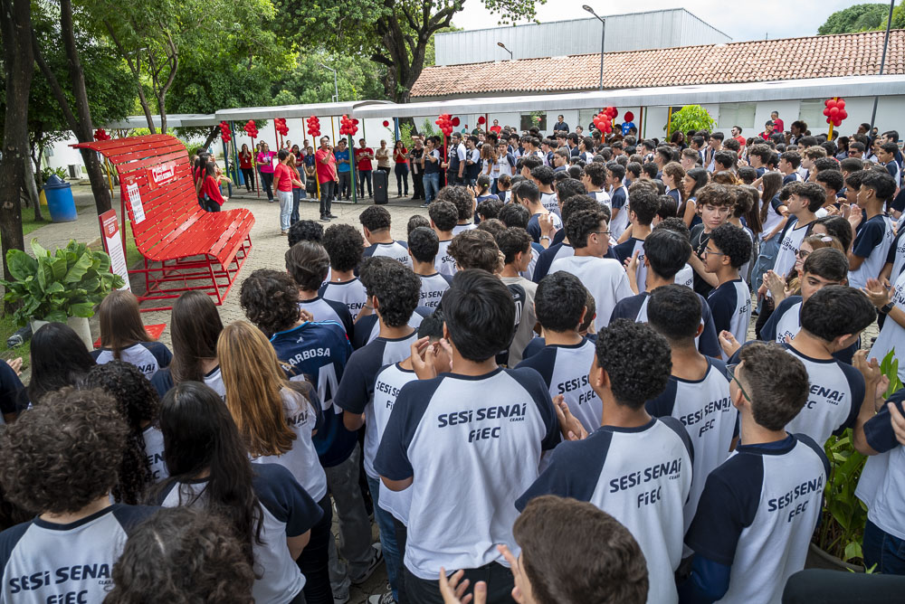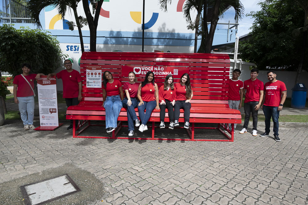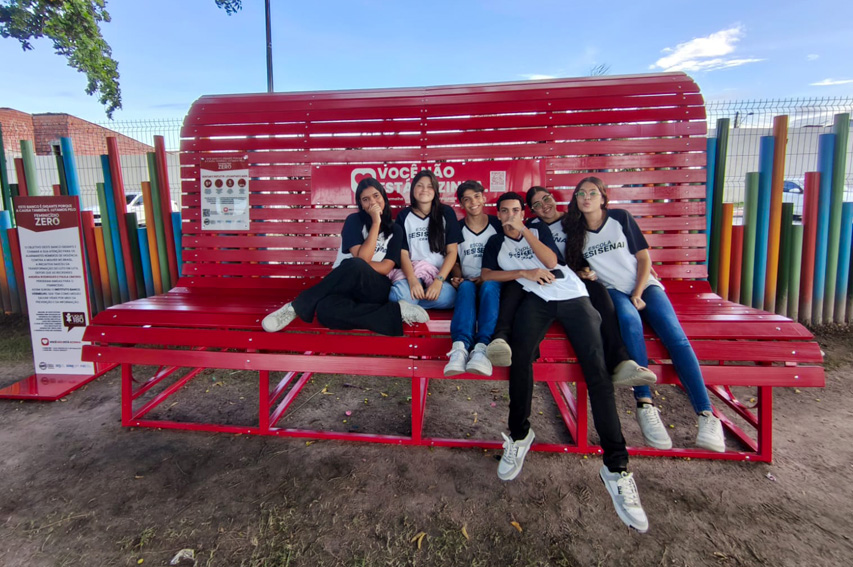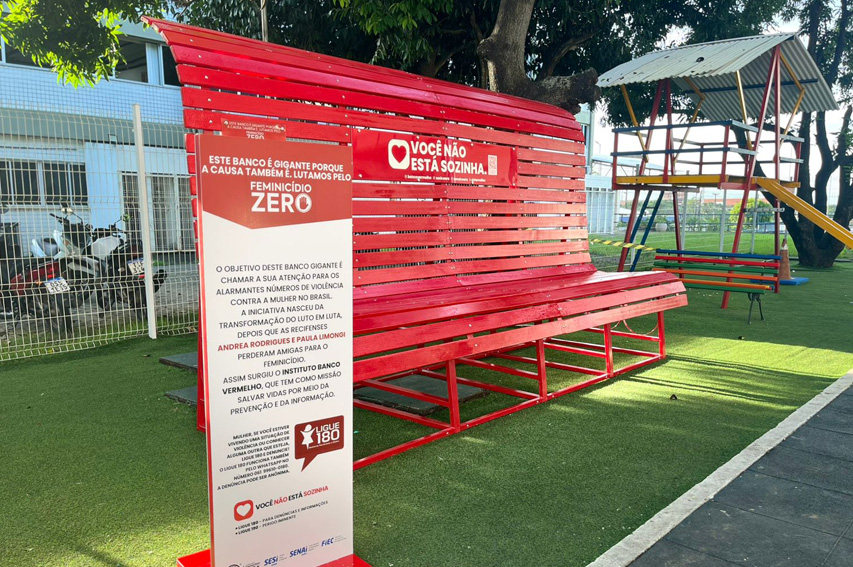 Feminicídio Zero: escolas do SESI SENAI Ceará recebem banco vermelho da campanha de combate à violência contra a mulher